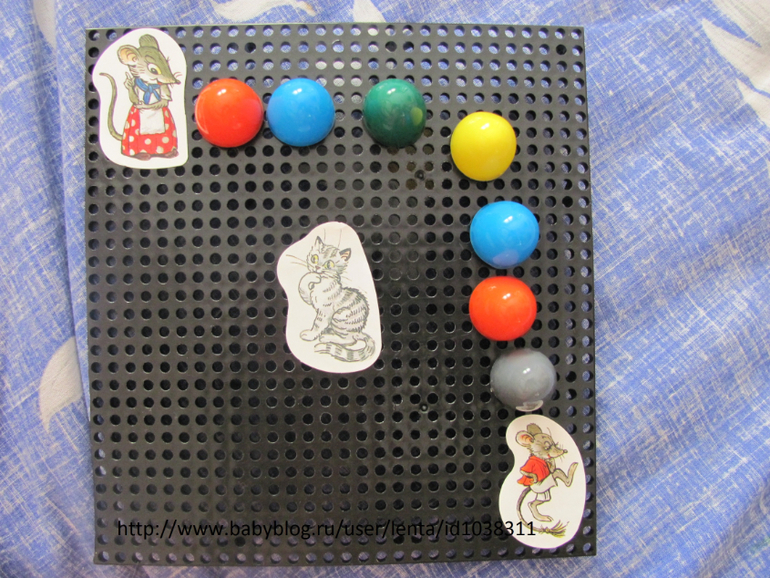 Здесь делали дорожку к маме мышке, потом считали сколько использовали камней (фишек)