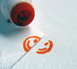 В. Частичный штамп. Учимся видеть часть в целом. Для мелких штампов плоховат метод, разгуляться негде, но если вдруг получится или есть штампы побольше - обязательно пробуем! Например, закрыть "лишней бумажкой" половину смайлика и получить луну! Точнее месяц.