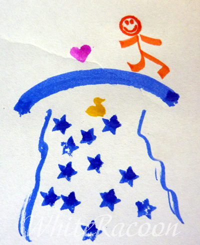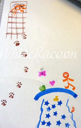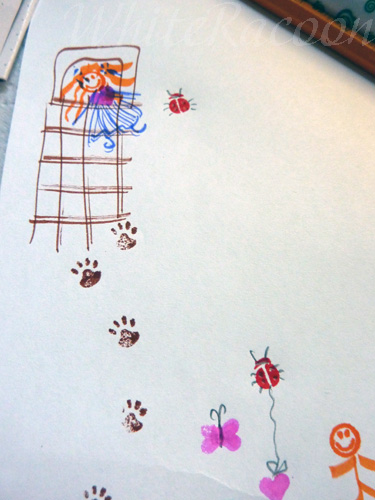 2. Ломаем стереотип "печать = статичность". Штампуем сказку. Не забываем про черную ручку для деталей. У нас однажды была такая: