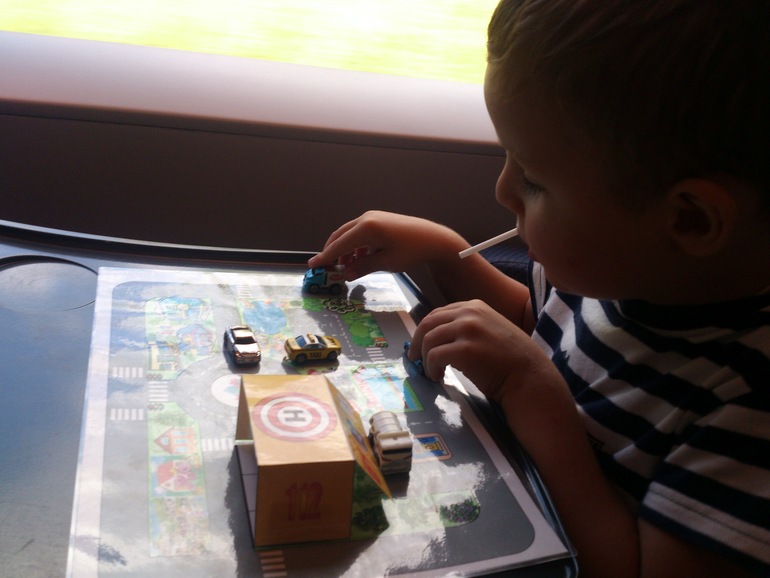 Места в сидячем поезде мало, откидной столик размером с альбомный лист. Отсюда и мысль начала бурлить. Вовка, как и большинство мальчишек, любит машинки. Поэтому решила нарисовать дорогу: