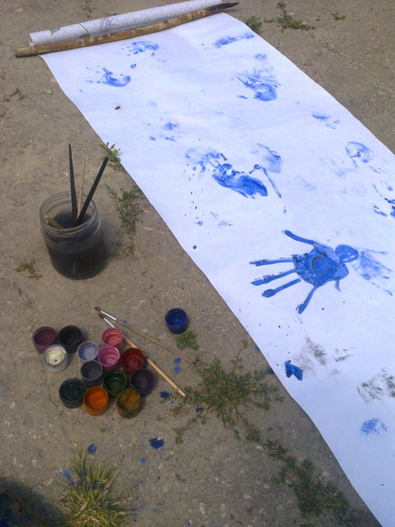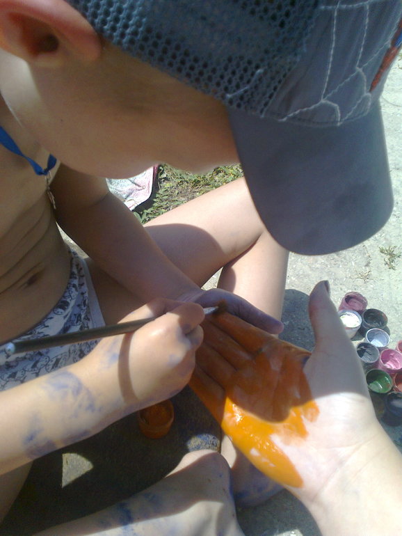 Вы гуашью рисовали? отмылась хорошо?Мы один раз рисовали подобным образом. неделю отмывались(((