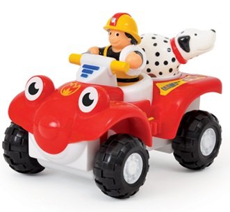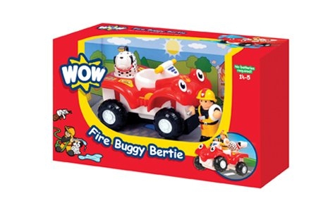 В Игровой набор входит: пожарный джип по имени Берти; пожарный, которого зовут Курт; собака по кличке Рассел. Съемные фигурки можно вынимать из машины и сажать их обратно. Во время движения машинка раскачивается и издает звуки, напоминающие звуки действующего настоящего двигателя. Игрушка инерционная, поэтому для работы ей не требуются батарейки - достаточно просто подтолкнуть ее вперед, предварительно слегка прижав к поверхности.