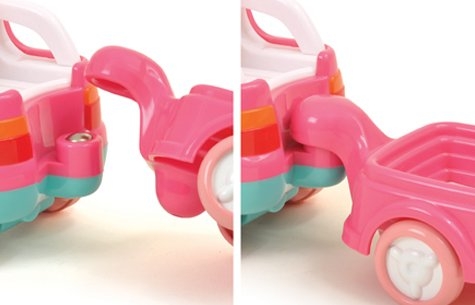 Магнитное крепление, встроенное в заднюю часть машинки, дает возможность взаимодействовать со всеми другими игрушками данной серии..