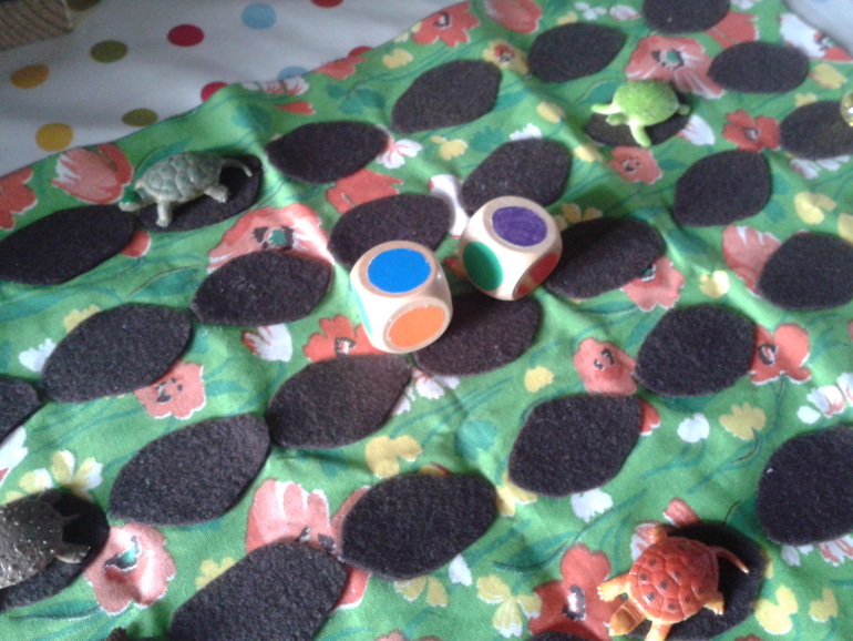 А если серьезно,то последнее время дочь стала болезненно относиться к проигрышам. А здесь есть возможность показать, что и последние могут выиграть. Ведь цель игры - правильно угадать какая черепаха придет первой, а какая последней.
