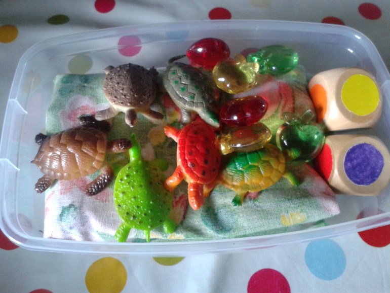 Черепахки куплены в МШ, ягодки и яблочки в Фикс-прайсе