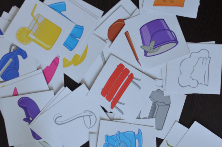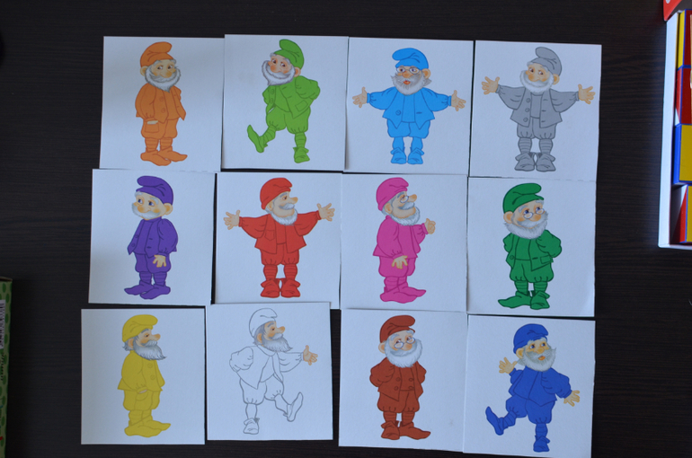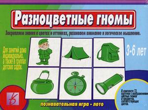 - разноцветные гномы, отличная игра на изучение предметов и цветов! Много карточек. Максиму эта игра очень нравится. У каждого гномика предметы определенной тематики, например зеленый гном - художник, эту особенность игры я не сразу заметила