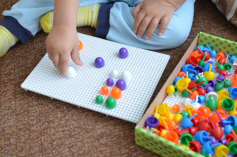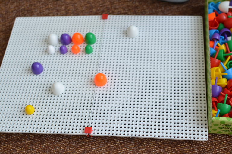 5) мозаика "радуга" - это то, что я искала) Фишки удобно держать, втыкаются хорошо, развитие мелкой моторики просто отличное!