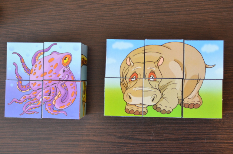 6) кубики "зоопарк" - нравится, что сложить можно объекты(животных) разной величины и длины, а не по стандартному квадрату)