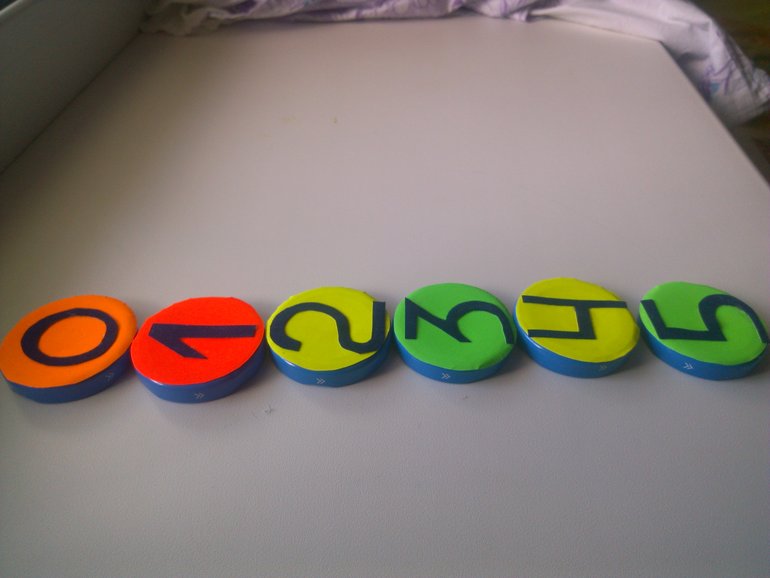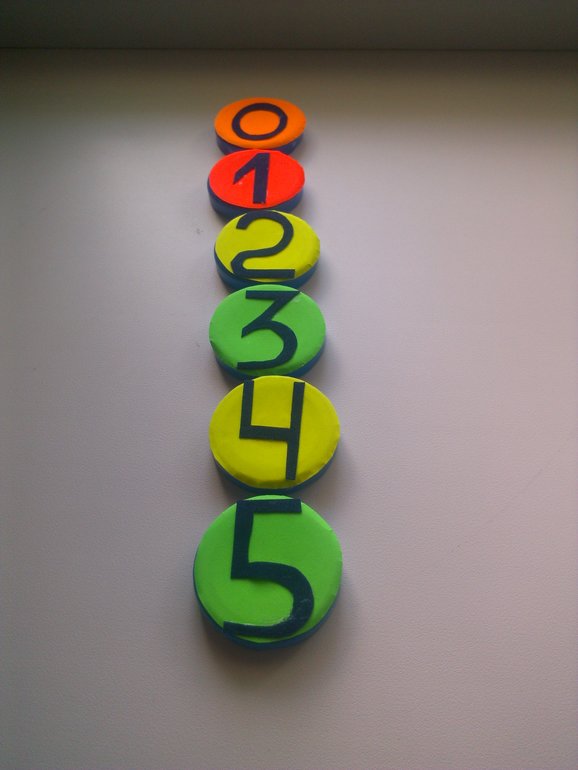 Идею взяла из интернета. В духе Монтессори. Пока цифр от 0 до 5. Позже доделаю до 10.