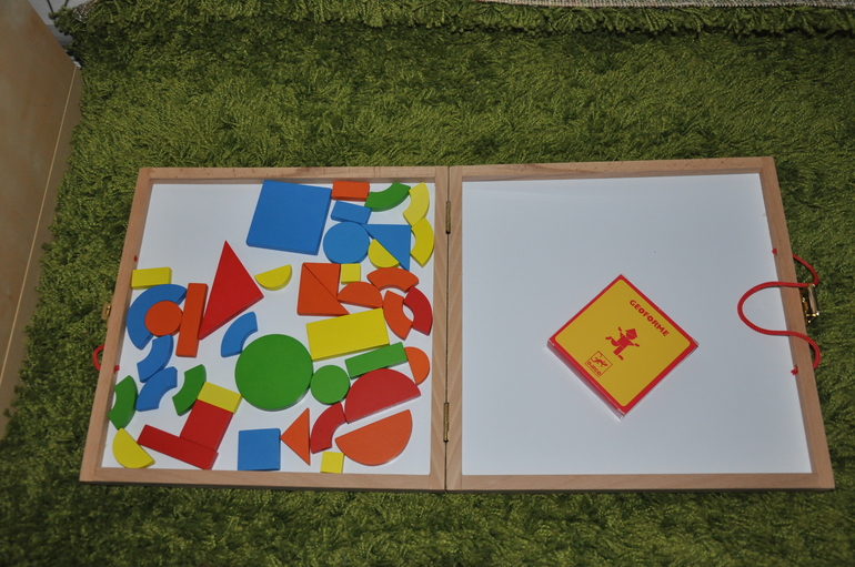 1. Магнитная доска с набором магнитных фигур Геоформ, Djeco
