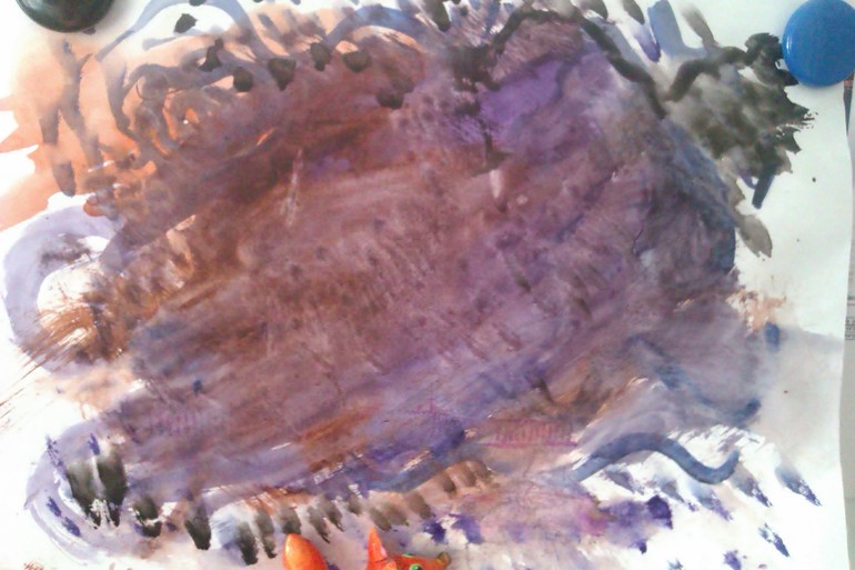 Артём рисовал с температурой 38, я ему подрисовывала черные линии,надеясь,что собьем температуру.