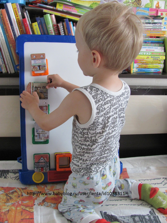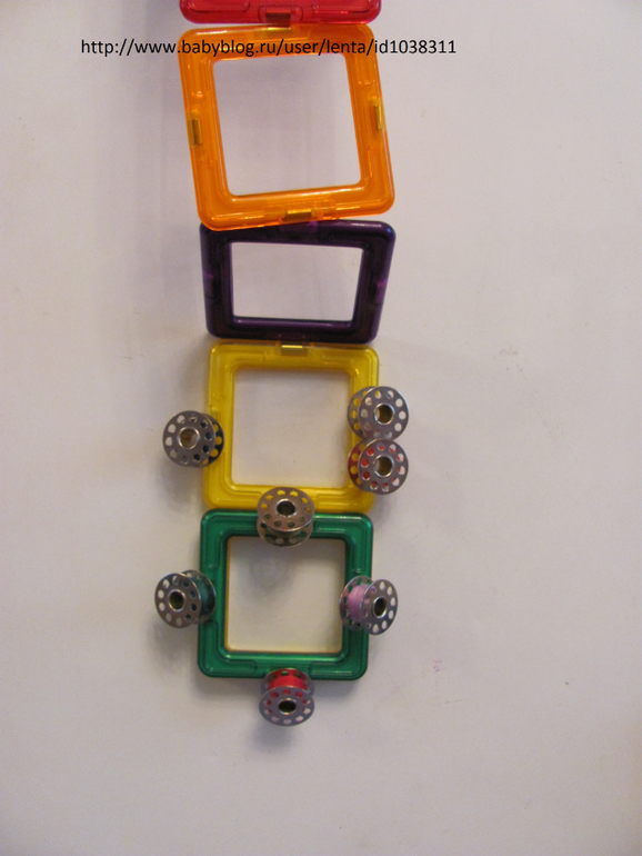 И ребенок любит примагничивать все что магнитится (например шпульки)))