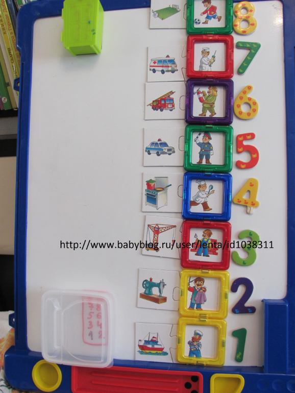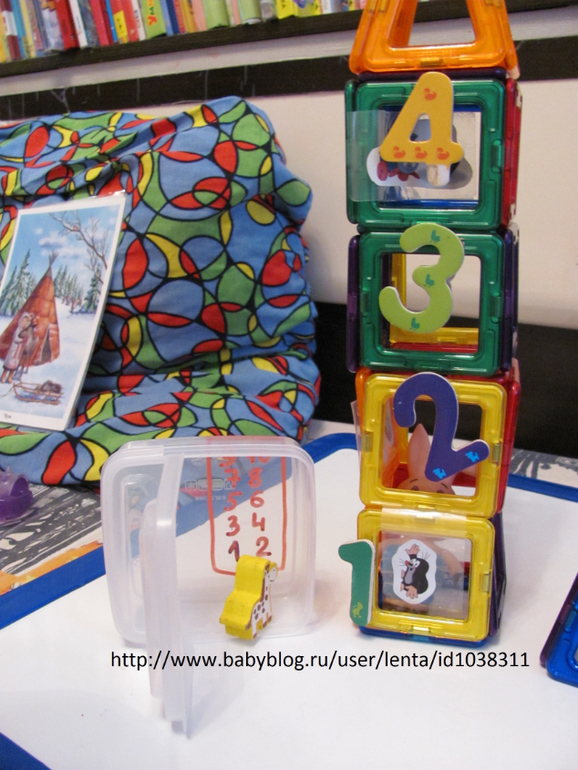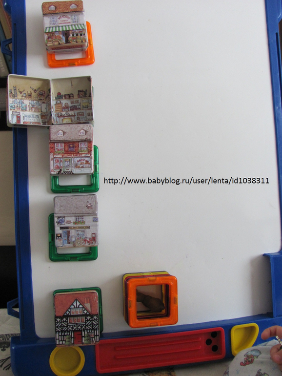Заселяли в домики магниты по цветам