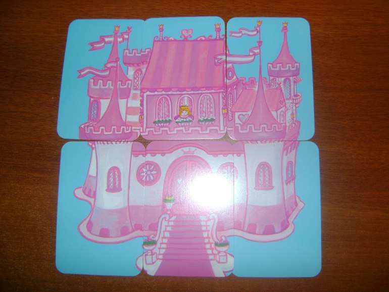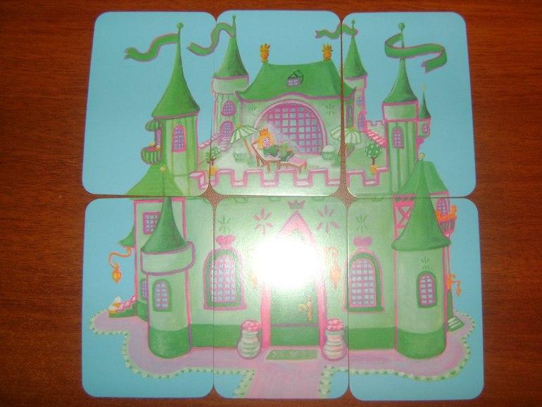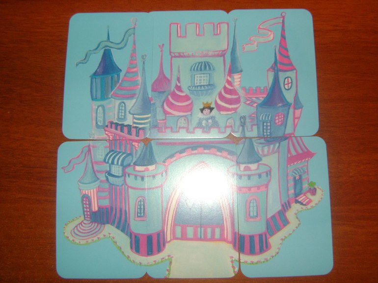 Игра очень захватывающая т.к в ней нужно быстрей всех построить замок своей мечты,состоящий из 6 карт)Вот только сделать это очень не просто...во время строительства и обмена картами будут мешаться злые колдуньи(отбирать карты и лишать игрока-хода)зато добрые феи будут всячески помогать,а карты с изображение бриллиантов помогут купить нужную карту)