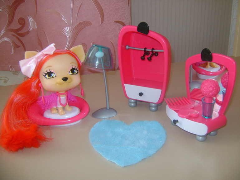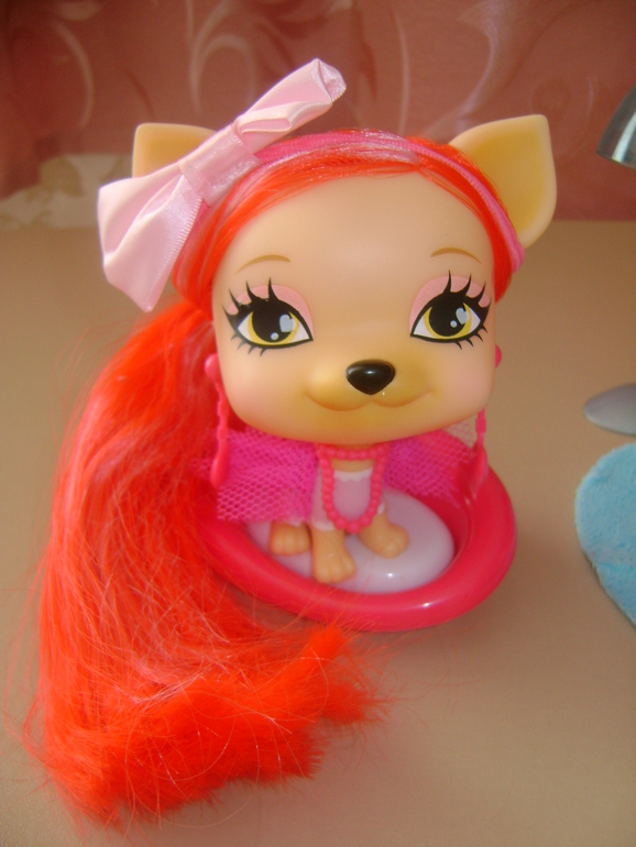 Видели просто отдельно собачек,и цена у них была вменяемая около 500-600р-на подарок для девочки -самое оно)У этих собачек длинные волосы,их можно расчесывать(при этом волосы не лезут)делать различные прически,в комплект с ними входят разные заколочки,резиночки,бигуди