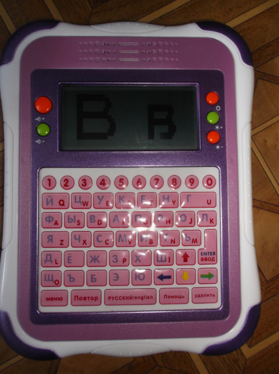 Планшет подходит деткам от двух лет и до школы.Что мне понравилось больше всего,так это то,что в нем очень много разнообразных программ:учим буквы и цифры,сложение.вычитание,умножение,деление,можно составлять примеры,можно писать слова,вставлять пропущенную букву в слово,выбирать из трех написанных слов одно,которое произнесли,можно поменять язык и учить английский.