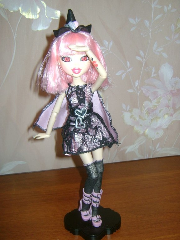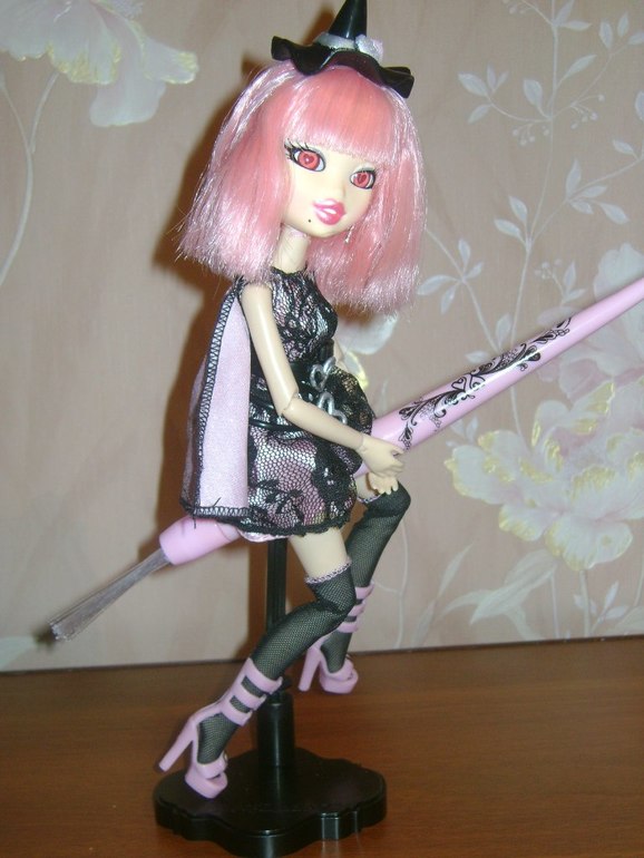 Ну и как у всех ведьмочек в комплект с куклой входит волшебный посох со светящимся шаром,метла(тоже светится) и расческа (в форме метлы)+подставка для Джейд