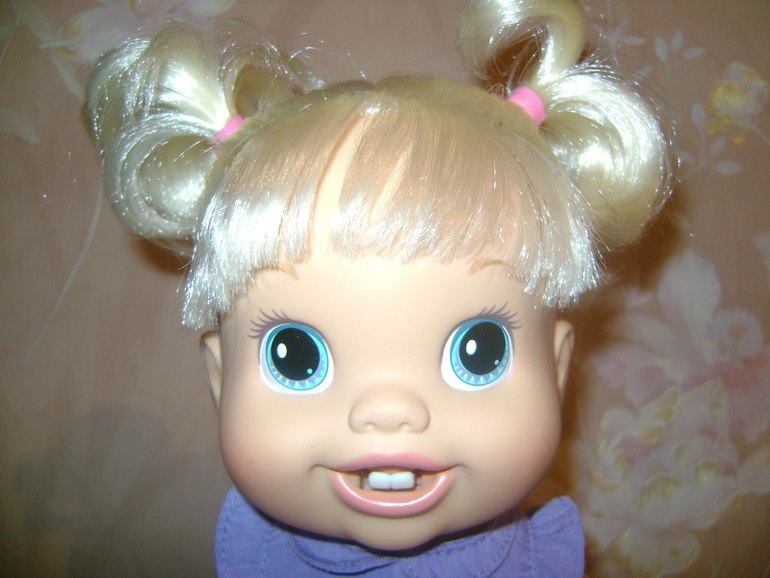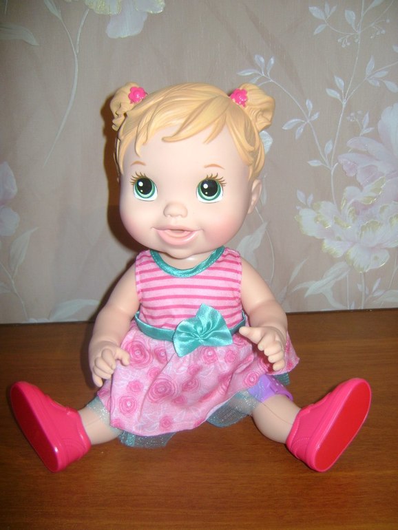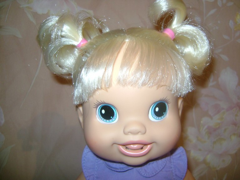 Кукла как и предыдущая умеет пить воду и держать в руках различные предметы