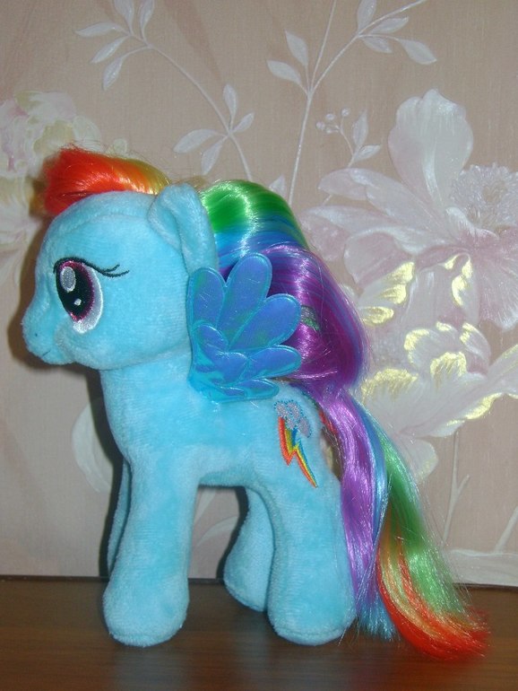 И прихватили еще с собой вот такую мягкую пони Радугу-очень красивая игрушка,глазки и радуга на попе вышиты