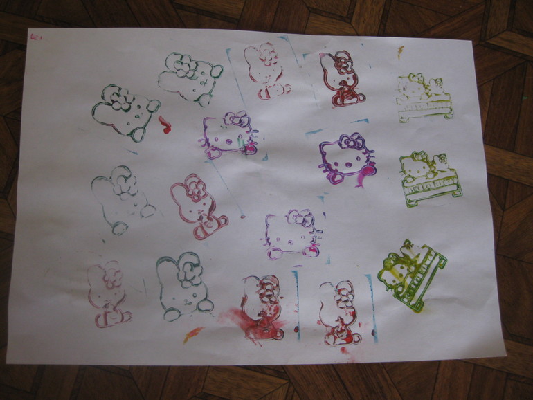 Вообще штампики мы любим, часто ими рисуем. Теперь вот и любимые герои добавились - Китти и Зайчонок.