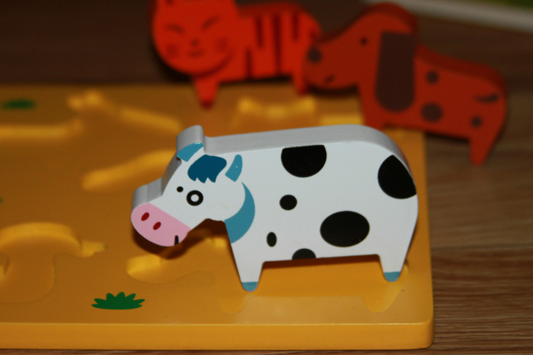 Самая любимая у нас - Корова, во всех пазлах, где она есть, тырит фигурку и может потом долго ее с собой по квартире носить. Как итог - коров мы часто не досчитываемся и находим при уборке :)
