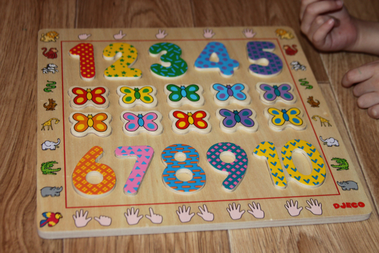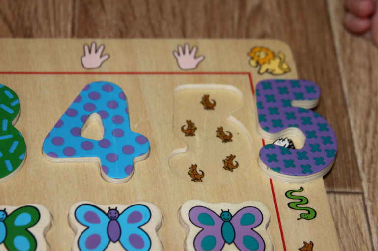 Дочка любила вынимать все фигурки - опять же, развитие для моторики, на цифры мы внимания не обращали. И безумно полюбились ей бабочки, она брала в кулачки сколько захватится и ползала с ними по квартире. Благодаря пазлу, бабочек стала узнавать везде и всюду, Сейчас пазл пока припрятан снова - достанем уже по назначению, как счет будем изучать :)