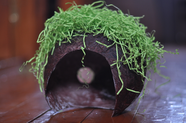 Вырезали в нем окна, дверь, покрасили в коричневый цвет и сделали крышу: