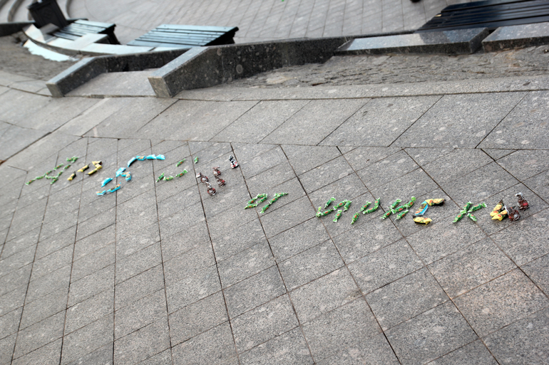 А потом там было много народа, которые рисуют, разрисовали нам деток