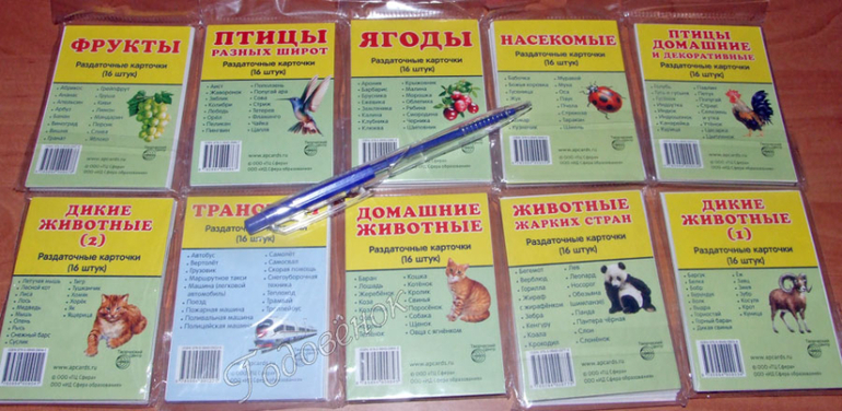 Сейчас недостатка в разнообразных развивающих карточках нет: выбор огромный. Покажу Вам три комплекта карточек, которые понравились мне: