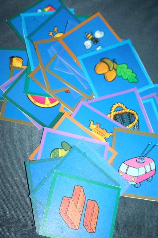 Вторым пунктом недовольства стала неправдоподобность некоторых изображений. Понять, что изображено можно только методом тыка, например дуб очень, уж, смахивает на иву, и только ассоциативная карточка с желудями исправляет положение. То же самое и с водолазной маской, только из-за ласт можно признать в этом синем нечто - арсенал аквалангиста.