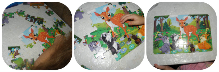 1) Начинаем как всегда с пазла, ( чтоб размять наши пальчики! ) Полина сама выбирает какой пазл будет собирать, на этот раз это бемби!