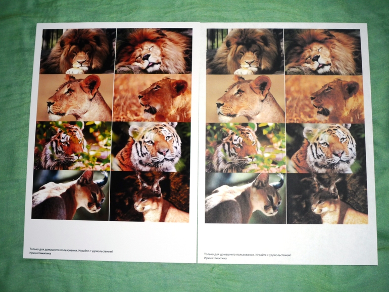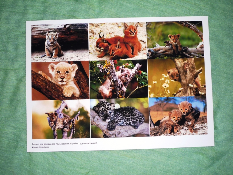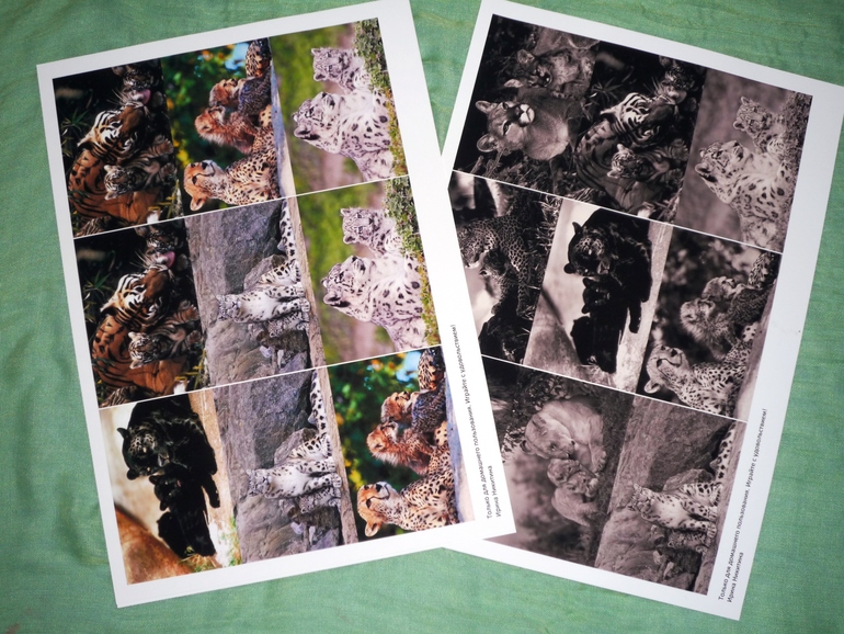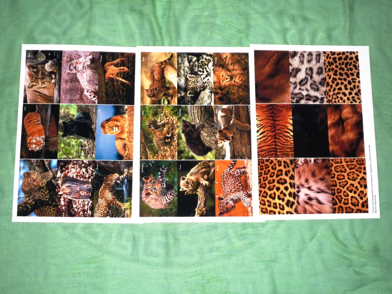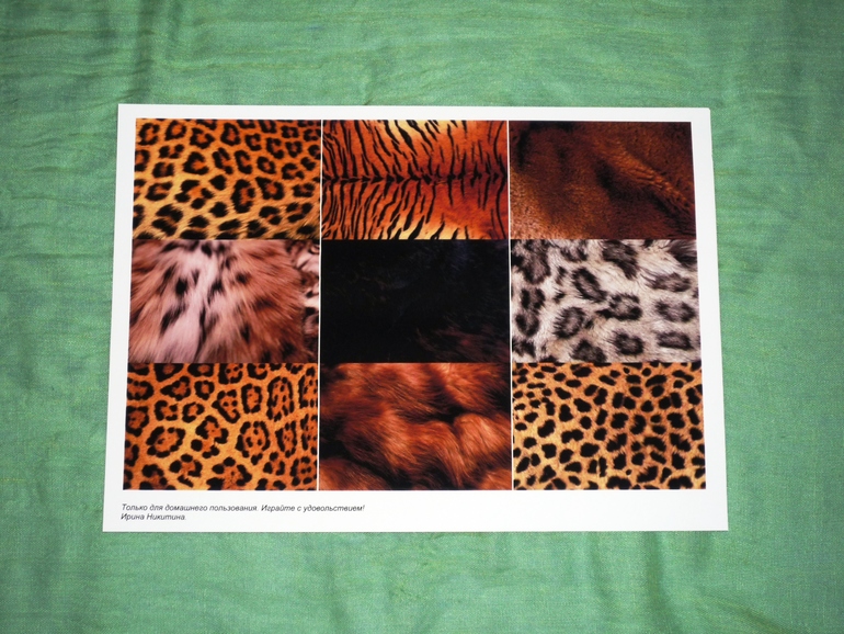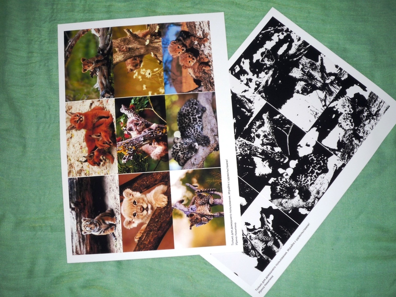 Я все печатала на фотобумаге (картинка и текст отдельно, потом склеивала и ламинировала). Также сделали такое лот (кошки-детеныши-текстуры(мех))