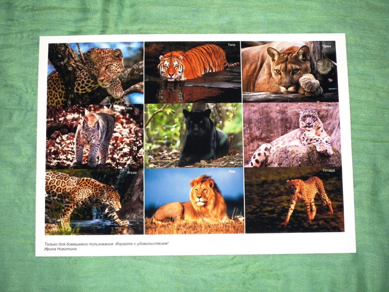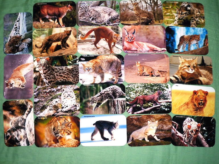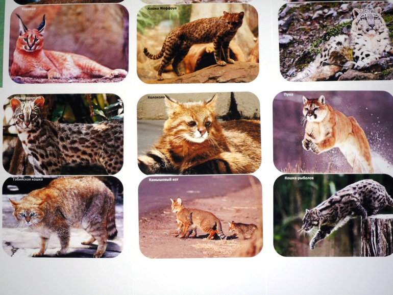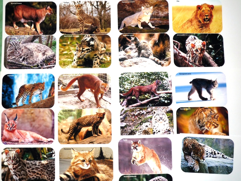 Что из этого вышло! Подготовила карточки с описанием про каждую дикую кошку (получилась 41 карточка) карточки делала 10*15. На фото не все, а всего 23 (закончилась фотобумага дома)))