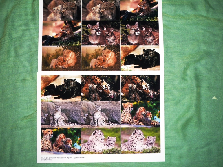 И поиск пары и 3 лото (лото мамы с детенышем, лото детки и лото кошачья нежность (на фото нет лот кошачья нежность, опять таки не напечатала из-за отсутствия фотобумаги)