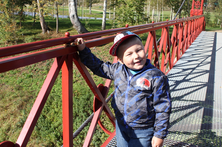 Если честно, страшно было.... Там такие перила низкие... Боялась за Славика... Но красиво... Погуляли по нему...