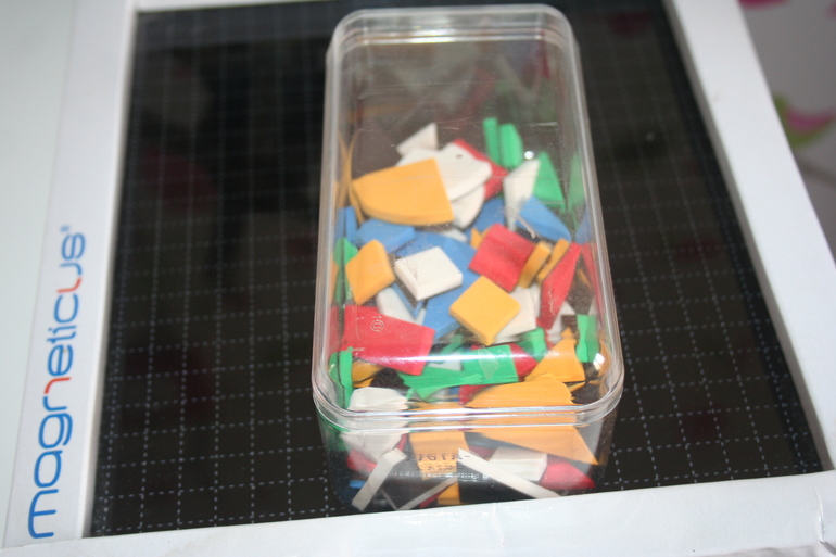 Играем мы с магнитиками по разному и в разном масштабе, можем на большой магнитной доске, а можем и на фабричной коробочке с бортиками, все зависит от того, что именно мы задумали делать :-)