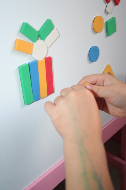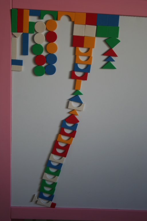 ....которую дочка быстро одним маневром превратила в динозавра. Мы такие превращения очень любим, и это еще один веселый и полезный для развития воображения вариант игры с магнетикусом :-) Обычно мы не даем заданий во что превратить предмет, главное во что-нибудь новое, но иногда загадываем задачки и посложнее :-)