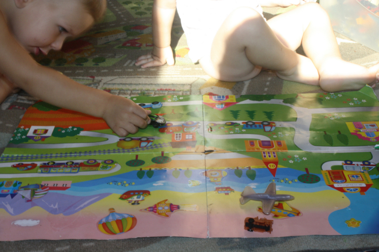 Достали плакат, который мы уже давно с Димой исклеили и наигрались, придумали новые игры