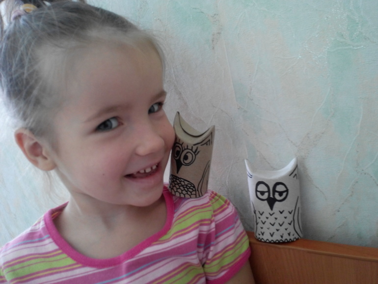 Очень мы с дочей любим совушек. Идею таких сов подсмотрела где то на просторах интернета. Делаются за пару минут, а играемся в них уже 2 месяца, сказки с ними разыгрываем.