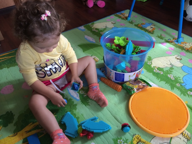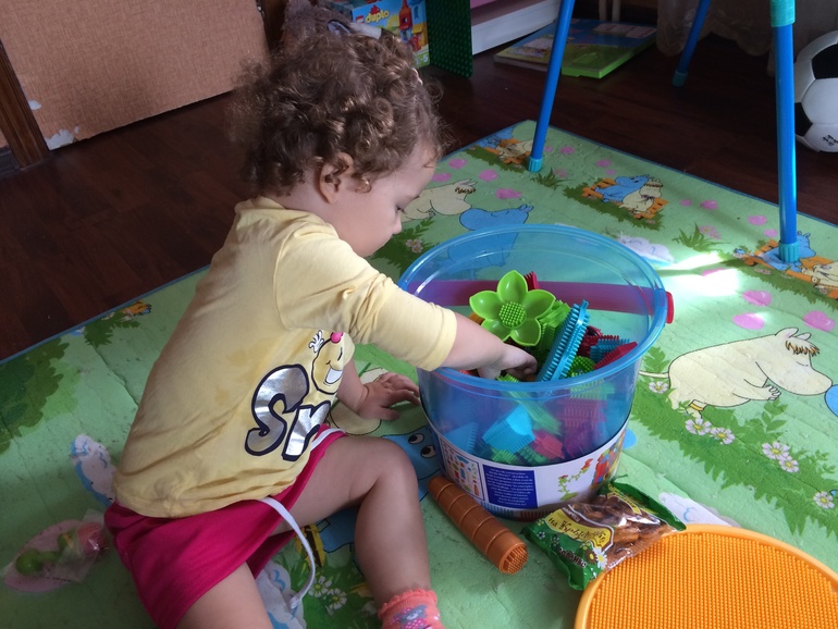 Алисе он, конечно, понравился. Принцип сцепления ей понятен еще не до конца, ну и прекрасно. Я люблю, чтобы игрушка была слегка на вырост, а игровые перспективы у конструктора большие.