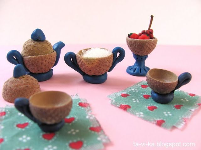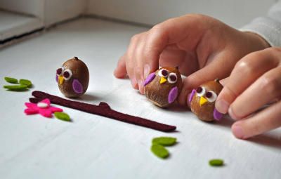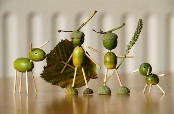 Осенняя пора помимо всего прочего - это время ярких поделок из природных материалов. Посмотрите сколько всего интересного можно сделать из листьев, шишек, каштанов и желудей (фото из сети):