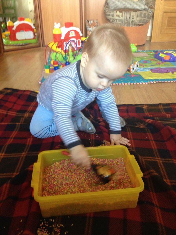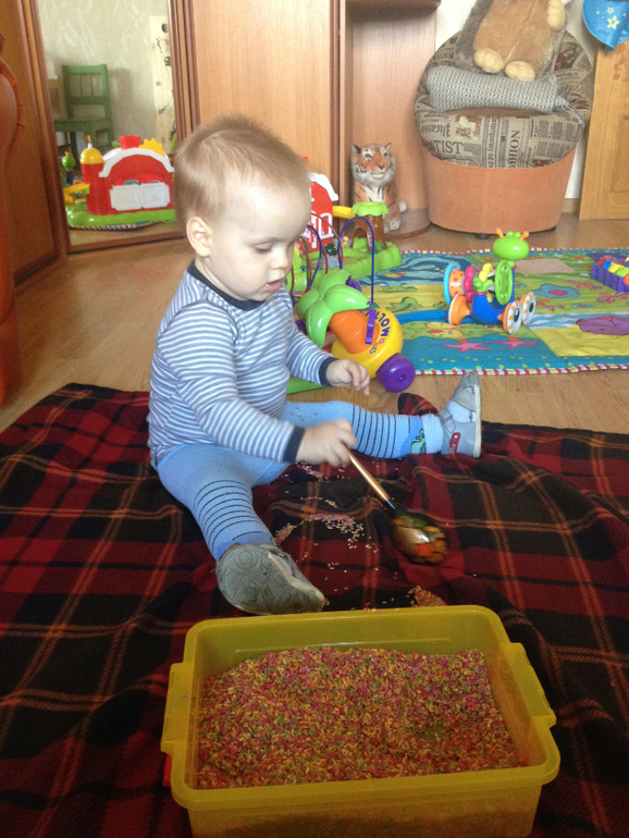 Игры и игрушки для малышей от 1 года до 2х летНам уже 1,5, а у мамы никак не дойдут руки сделать сенсорные коробки. Наконец, одну я все-таки сваяла