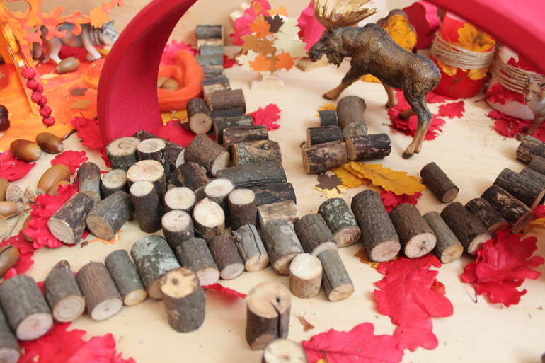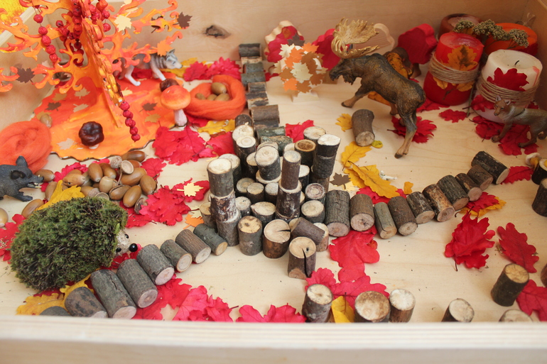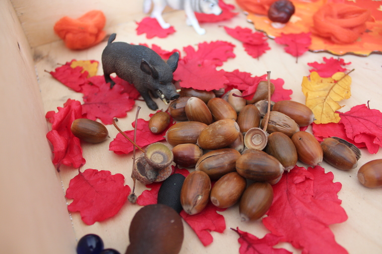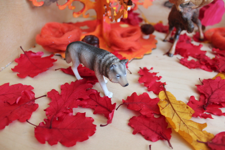 А если заглянуть в нашу большущую осеннюю коробку, то и волка уже можно встретить, но он добрый...