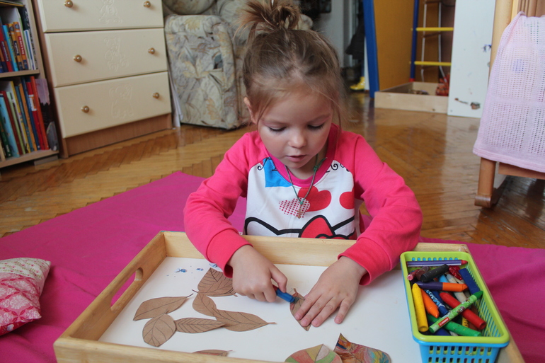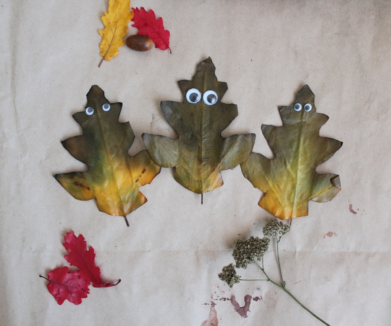 а потом усердно трудятся превращая бумагу в виде листочков - в чудесные яркие и почти живые листики )
