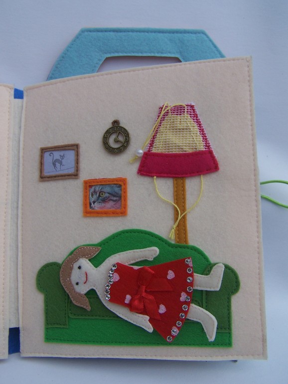 К сожалению, моя дочка книжку еще не видела. А деталей хотелось еще больше сделать, но я так устала её шить, что решила потом доделаю ещё. (Хотя, что сразу не сделаешь, потом уже никогда не доделаешь. :) )