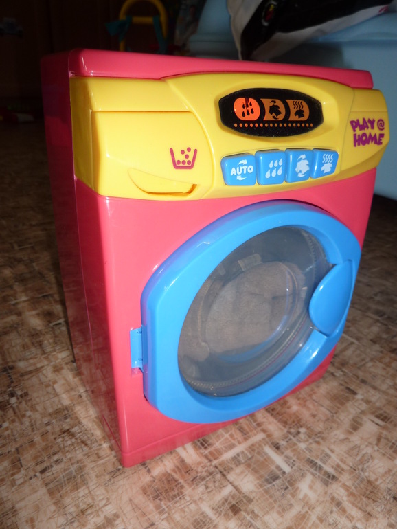 Но вот благодаря чудесной девушке Наталье в нашей семье появилась ОНА - стиральная машинка со звуковыми эффектами, кнопочками, барабаном, выдвигающейся частью для порошка.