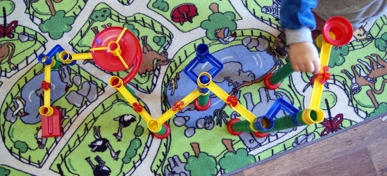 Больше всего нравятся не очень замысловатые дорожки, легче наблюдать за шариком. Качество исполения на высоте! Крепкие, яркие детали, легко соединить-разъединить. Отличный конструктор!