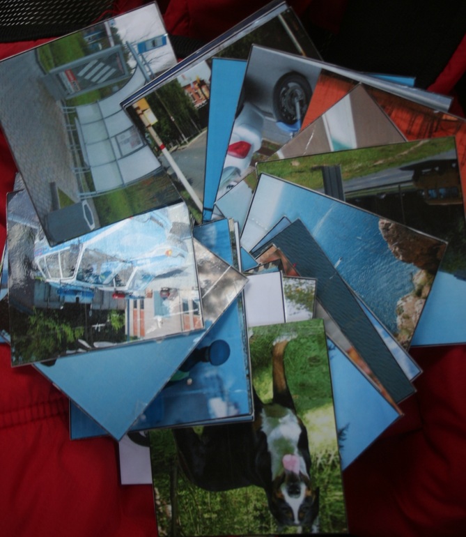 Игру я эту сделала очень давно, и до сих пор она нас выручает в дороге, но если раньше я была штурманом, то теперь только дочка выполняет роль ведущего :-) Механизм игры прост: берем карточку, озвучиваем искомый предмет и ищем его на трассе, кто первый найдет, выигрывает картинку.