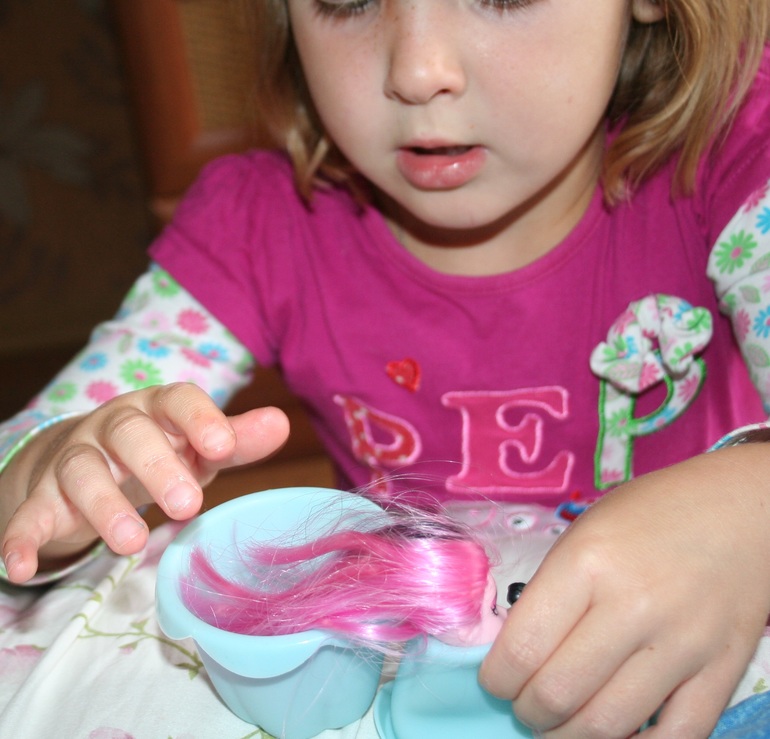 Собственно, именно одна из них и то, как с ней играла дочка сегодня, и подтолкнули меня к расспросам. Потому, что я даже и не думала вот давать дочке просто для игры. Мы их использовали как емкости для всевозможной творческой всячины, и как раз сегодня, когда содержимое было истрачено, в ход пошло креативное детское мышление, и вуа-ля, перед вами кресло в салоне красоты, где клиенту моют голову :-)