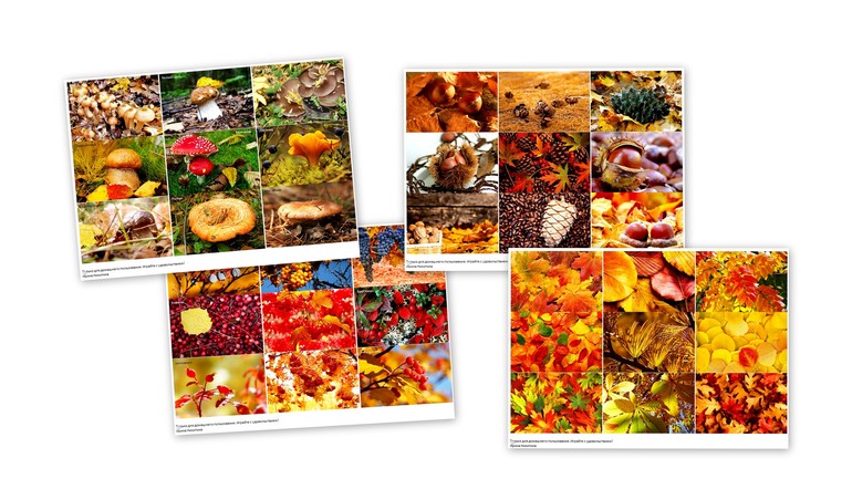 На этот раз осенняя тематика! У нас получились карточки с осенней природой, животными, птицами, ягодами, грибами...